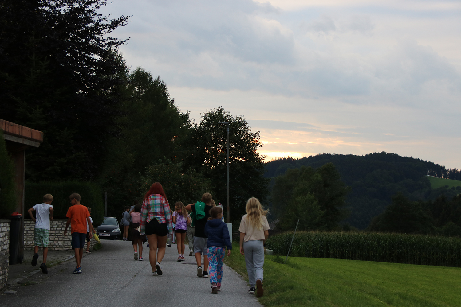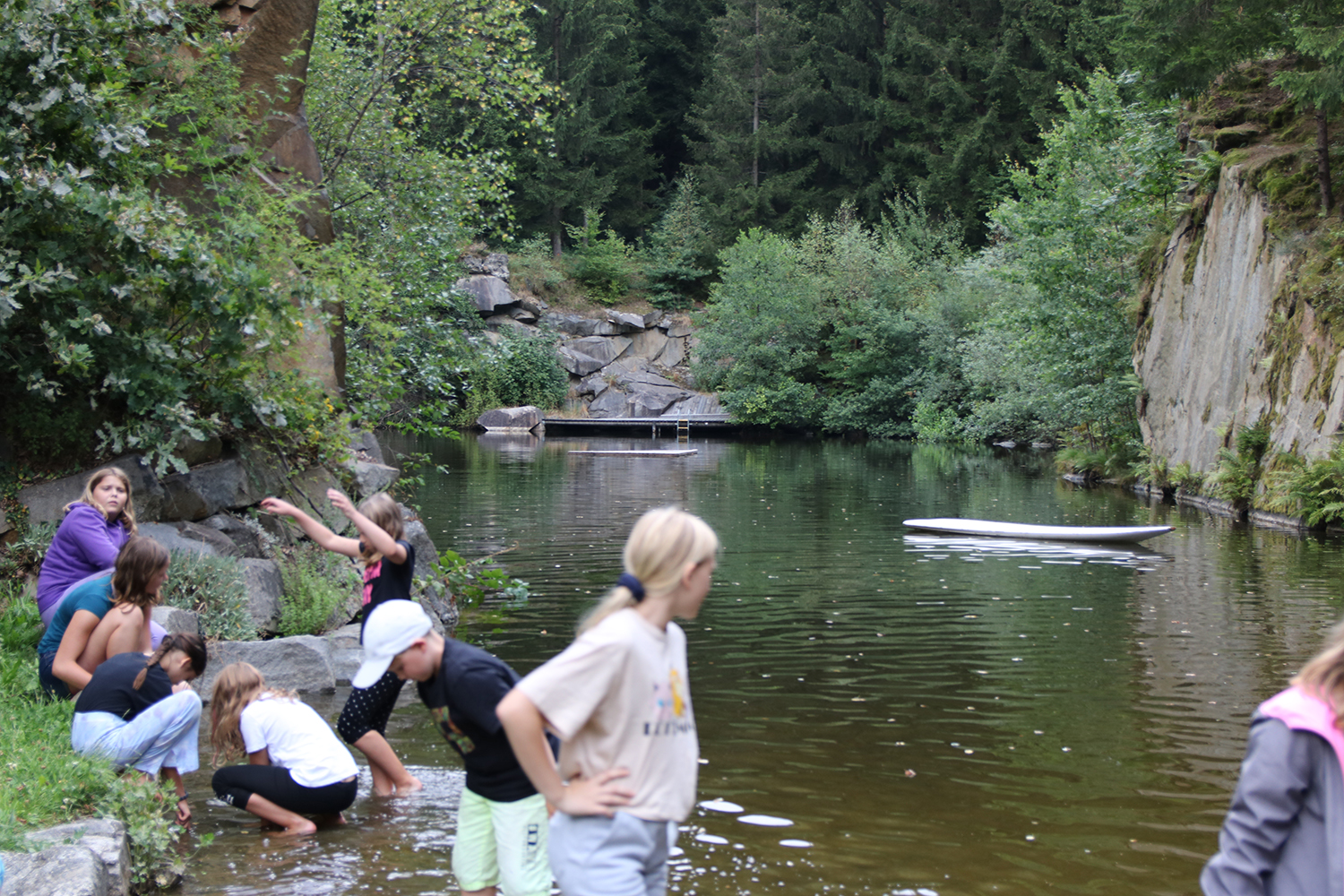 Mit einem kleinen Spaziergang zum Badesee und einer Basteleinheit geht der erste Tag zu Ende ...