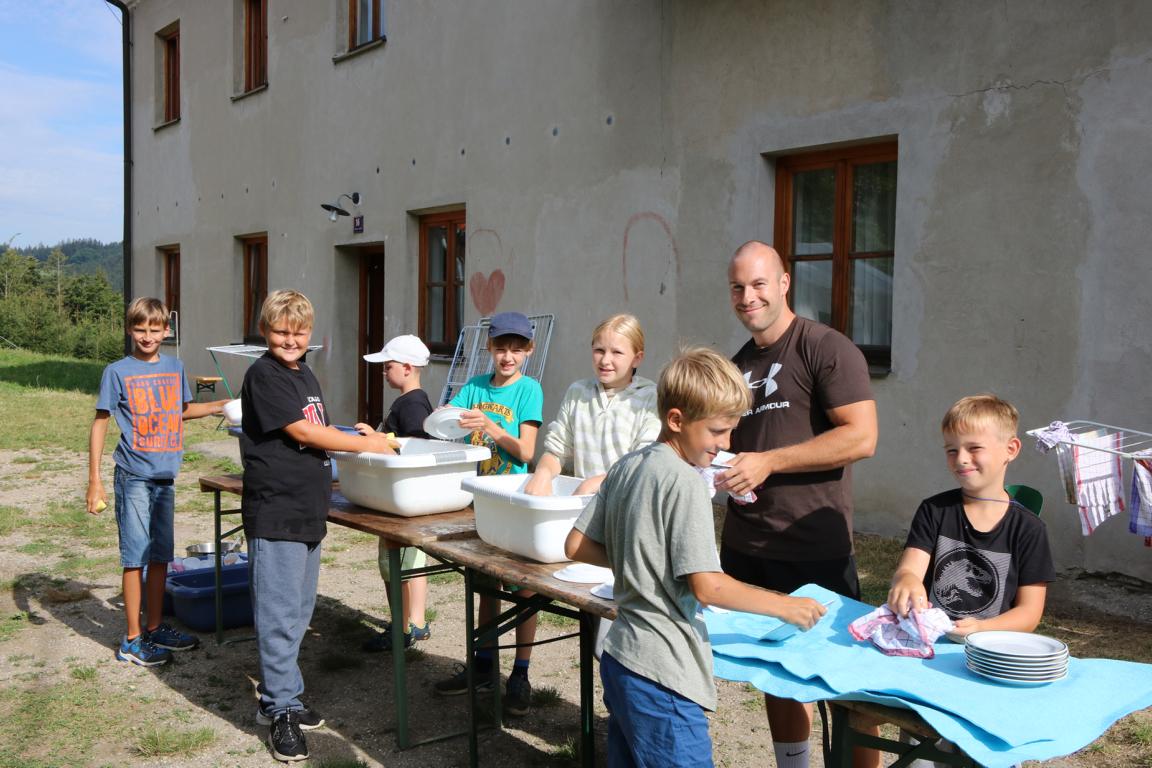 Gleich nach dem Frühstück geht es los zum Abwasch, aber mit Freunden und Musik geht das wie nix!